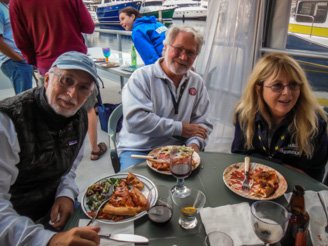 Because we’d been cruising in British Columbia for an extended period of time, our calendar allowed us to arrive a few days early. We would use the time to catch up on the usual boat chores. These chores included a thorough cleaning of the boat, inside and out, washing clothes, and picking up a batch of mail. In the midst of our getting settled and organized, Ranger Tug owners, and residents of Anacortes, Bob, and Nita (below), on Nellie Too, approached us and said they were trying to put together a group to head up to Anthony’s for the early bird special. So, with a sprinkling of familiar faces and a few new mixed in, we had an unofficial kick-off to the rendezvous.