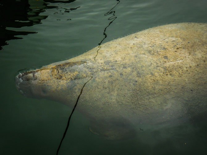 We had several delightful manatee encounters right by our boat. The water is so clear it was easy to see them below the surface. The woman, in the photo below, hurried over to our dock when she heard there was a thirsty manatee there. She seemed to know all about the creatures, but I was surprised that she grabbed our hose to give them a drink. We have always heard that it is illegal to give them fresh water. See this article about manatees.