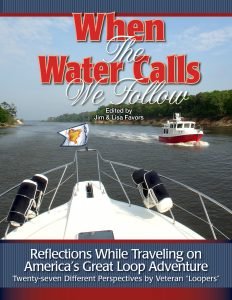 A few months into their first Great Loop trip Traverse City residents, Jim and Lisa Favors thought that a book by a group of boaters who were willing to share their personal perspectives about their own “Loop” would be a valuable tool for those either considering this trip or just plain curious about it. This book (edited and published by the Favors), When the Water Calls… We Follow, is a good read for anyone considering leaving the comforts of home to take off on an adventure of any kind.
