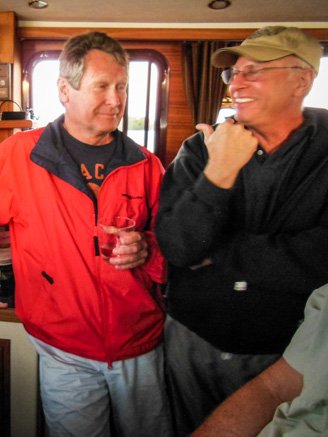 That was us today as we all “flocked together” at the Cayo Costa anchorage enjoying happy hour on Heart Tug. Those who had dinghies shuttled those who did not over to the party. It was a bit hard to maneuver around the tug, but we managed to do it very carefully. It was also mentioned that we should not all go to one side of the boat, at the same time, to look at something, that would have been a disaster.