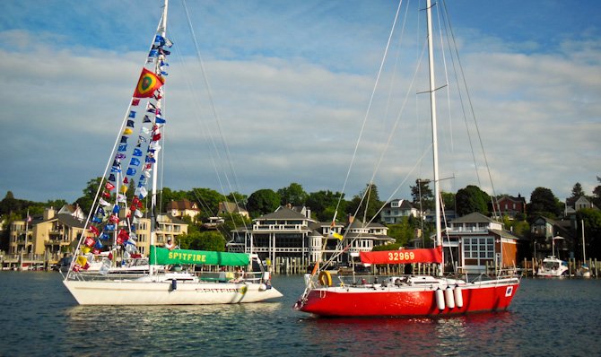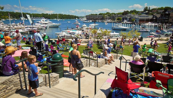 In stark contrast to our time cruising the North Channel this summer was our five-day stop in Charlevoix, while on our way home, for the 2012 Venetian Festival. One of our all-time favorite festivals. We called Charlevoix’s harbormaster, Hal (below-right) to receive our slip assignment soon after we arrived in Round Lake. Before we knew it we were tied up snug on B dock ready to partake in the festivities. Thanks, Hal!