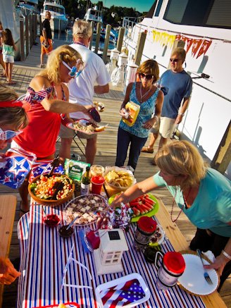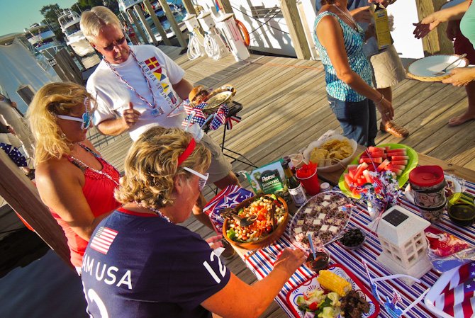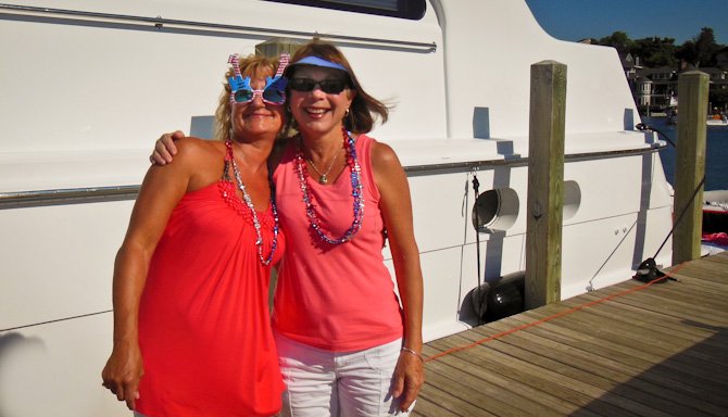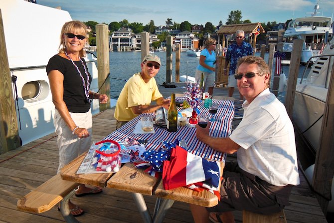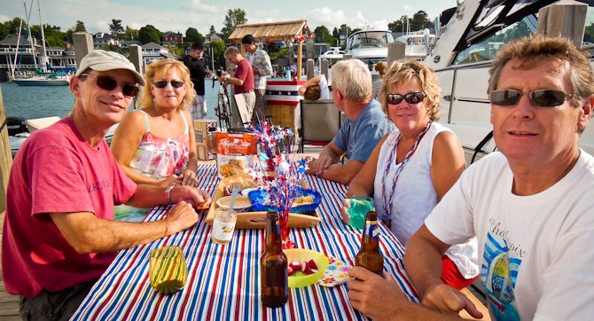 Our dock mates, Jan and Jean (above), spent considerable time and effort planning a weekend-long dock party on B dock complete with a tiki hut and decorations. Nice job guys!