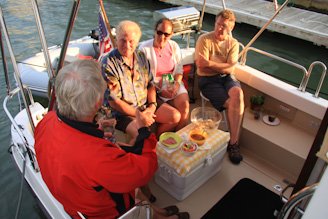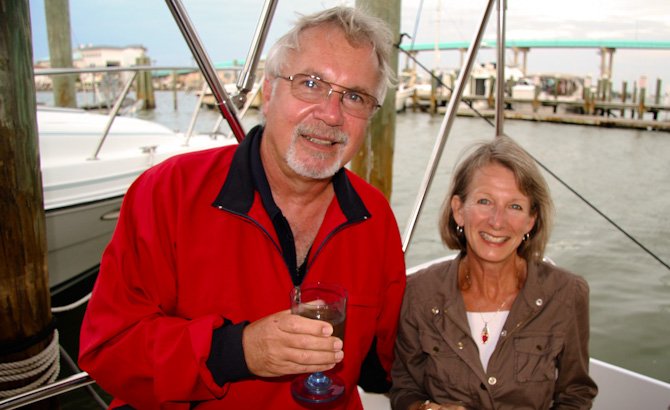 Whenever we meet up with boaters from our homeport of Charlevoix, Michigan, we have a special toast, and it’s always the same. The HERE is always where we currently are and the THERE is always where we love to be and it’s always the same… Charlevoix. We’ve been meeting up with Hal and Marianne (above) in Florida for the last few years. (Hal is our harbormaster in Charlevoix, Michigan and they are both dear friends.) This year they decided to try the Cape Coral area so it worked perfectly with our schedule.