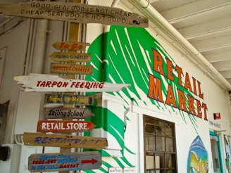 Amazing as it seems, Jim and I have never tried stone crab claws, so, off we go for the well-known happy hour at Keys Fisheries Restaurant in Marathon. This is a good way to try this seafood special at a great price and we love the atmosphere. We’ve been here before for lobster Reubens, another unusual treat for boaters from the Great Lakes. We’re glad to report the claws, along with the tuna sashimi we also ordered, were absolutely yummy.