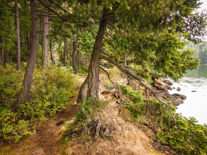Our walk continued down to Fox Cove and Fossil Bay where we stopped for lunch and found a couple of park docks, more anchorage possibilities, and many campers using picturesque sites scattered around the park.
