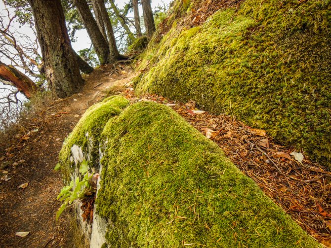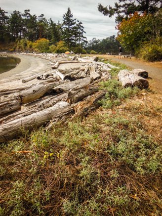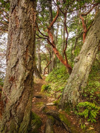These beautiful Pacific madrona trees (arbutus menziesli – also known as bearberry or refrigerator tree) stood out amongst the other greenery on the island, the thin red peeling bark reveals a silvery smooth greenish wood below.