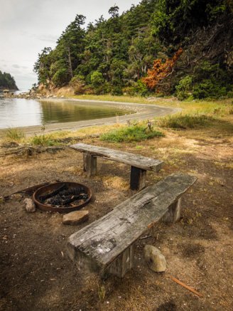 Leaving Friday Harbor behind us we cruised to Sucia Island, a Washington State Park sitting in the San Juan Islands at the base of the Strait of Georgia, only 3.5 miles from the Canadian border. Our 16-mile ride, from Friday Harbor, was short and uneventful, however during the last few miles we had no leeward protection from the southeast and the open waters of Rosario Strait, so it was a little lumpy. Taking it slow and steady we made it into the well-protected cove of Shallow Bay, where we happily found a mooring ball available; our plan was to spend a couple of nights in the cove. We left Friday Harbor rather late in the morning and we took our time going the distance, so after settling into the cove we just sat back and enjoyed the late afternoon’s stormy-looking skies as they glided over us as the wind finally started to settle down a little.