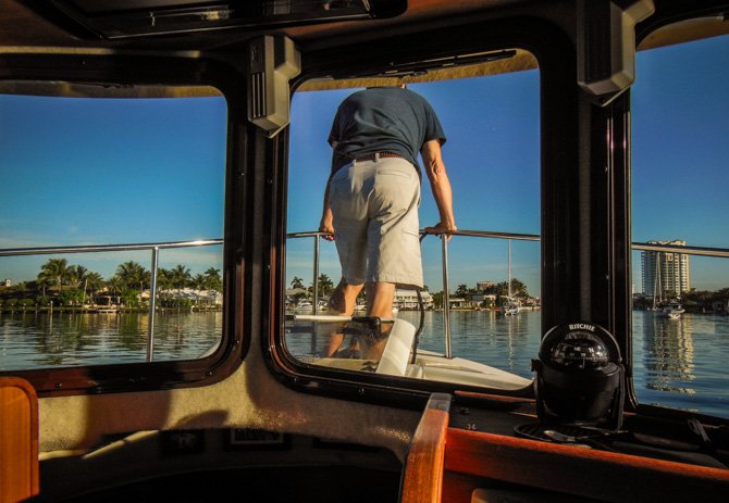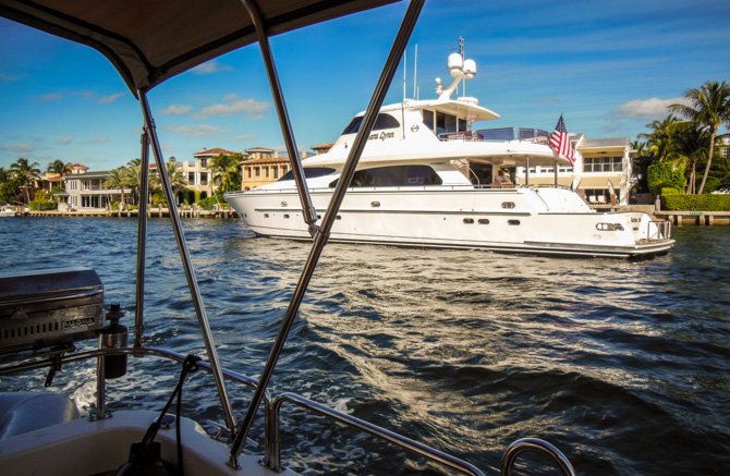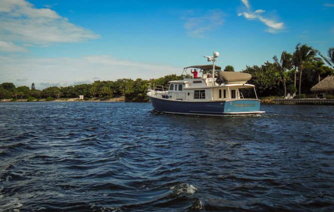 The next day we worked our way only 20 miles south to anchor in the northern reaches of Lake Worth. We were looking forward to meeting up with our friend Rick on Wishing Star. Much to our surprise, our paths crossed while we were heading south and he was taking guests north for a day trip. This did give us an opportunity to take photos of his new boat underway. We’ve shared many boating experiences with Rick over the years and were looking forward to seeing him for a short bit as we made our to the anchorage in Lake Worth, close to Old Port Cove Marina where Rick was docked.