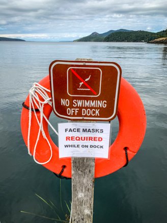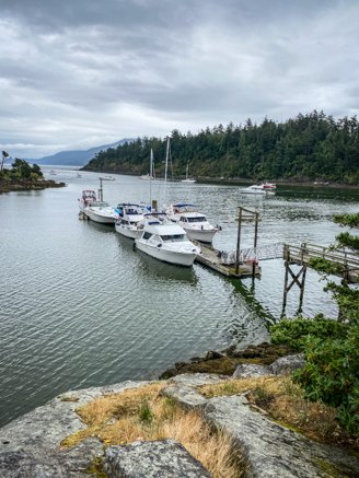 On the recommendation of another boater, we picked Jones Island for a three-day stay, the time limit allotted to boaters at most of these marine parks. We chose the cove on the north side of the island, it’s the one with a boat dock. As luck would have it, there was space for us at the end of the dock. The benefits of having a smaller boat! We grabbed it and spent three days exploring the island and relaxing on the boat. Great trails around the west side of the island provided off-boat activities for our crew. Since cell service was poor at the dock, a quick walk to the west side of the island provided a consistent signal while also supplying a stunning view from wind-swept cliffs and stony beaches off San Juan Channel. Also, Jones Island is one of the parks that provide water to its campers and boaters.
