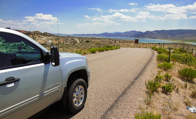 After three full days of driving across the country and camping at RV parks along the way, we arrived at Lucerne Valley Marina early afternoon on the fourth day. We were more than ready to test out the waters of the Flaming Gorge Reservoir. As we drove from Green River, in Wyoming, south along the western side of the Gorge we couldn’t help but notice the desert-like environment. After making the turn and driving the 4-miles to the marina we crossed the state line into Utah, we could see the change in the landscape off into the south, the area we’d eventually be cruising in.