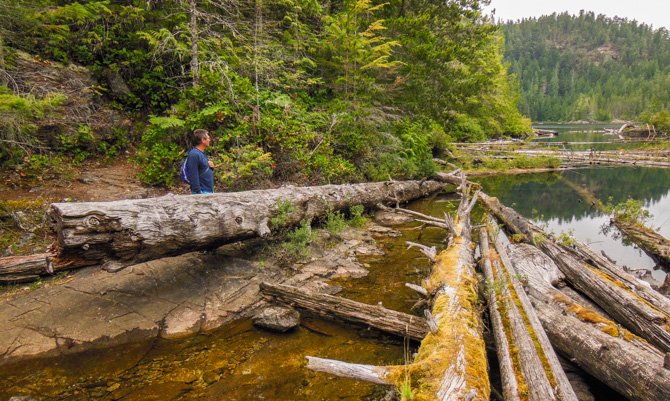 Our decision to stay two days at Teakerne Arm was made so we’d have plenty of time to dinghy over to the falls and hike up to Cassel Lake for a swim in the freshwater. Making our way up the rugged worn path we were rewarded with a pristine natural trail (the last 70 years it has not been logged) and finally Cassel Lake. Today the area is a Canadian Provincial Park. We spent a couple of hours on our hike, before returning to the dinghy and another pass by the cascading waterfall. Two days and nights hardly seemed enough time, however with so much to explore we’d have to move on to Tenedos Bay and Prideaux Haven, all contained within the Desolation Sound Marina Park.