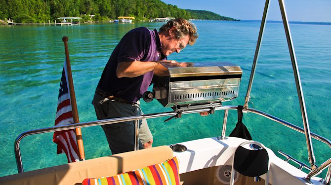 We’ve boated in a lot of water, all over the United States, Canada, and even the Bahamas, but the crystal clear water in Torch Lake continues to amaze us to this day. There aren’t many anchorages where you can actually see your anchor stuck into the lakebed under your boat.